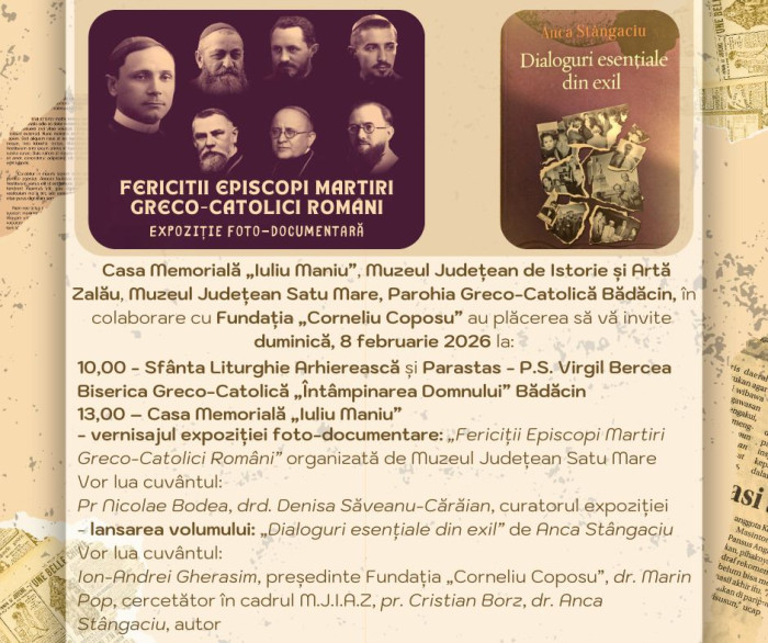 Comunitatea din Bădăcin va fi, duminică, 8 februarie, gazda lansării volumului „Dialoguri esențiale din exil”, de Anca Stângaciu, și a vernisajului expoziției foto-documentare „Fericiții Episcopi Martiri Greco-Catolici Români”.
