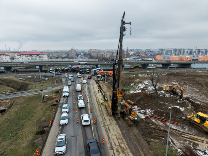 Forarea primilor piloți la pasajul rutier subteran care se construiește în Oradea la intersecția dintre Calea Aradului și Centura Oradea, în apropierea magazinului Jumbo, pe DN79 a început luni, 19 ianuarie.