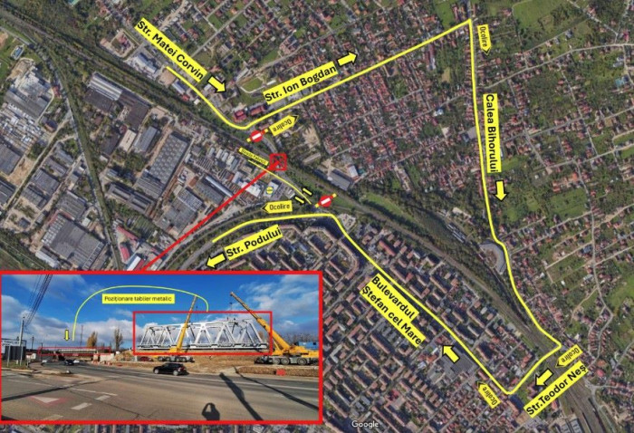 Primăria Oradea informează că, la solicitarea companiei Webuild, vor fi instituite restricții temporare de circulație pe străzile Piatra Craiului, Gheorghe Doja și Louis Pasteur, pentru executarea lucrărilor la pasajele feroviare.