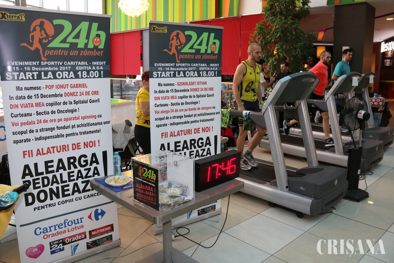Ca în fiecare an, organizatorii i-au invitat pe orădeni începând de vineri, ora 18.00 şi până sâmbătă, ora 18.00, să se alăture sportivilor inimoși și să susțină cauza alergând sau pedalând la eveniment în schimbul unei donații. Au fost disponibile două benzi de alergare și două biciclete pentru public/sponsori, pentru a se putea alătura sportivilor pentru intervale de timp dinainte stabilite. Participarea la eveniment s-a făcut în schimbul unei donații: 50 de lei pentru 30 de minute de alergare sau pedalare, pentru intervale de timp dinainte stabilite printr-un tabel. Evenimentul sportiv caritabil a fost lansat în 2012 de István Szokolszky – sportiv de anduranță – care s-a oferit să alerge 24 de ore încontinuu pentru a aduna fonduri în beneficiul Secției de Oncologie Pediatrică a Spitalului Municipal Gavril Curteanu din Oradea. Potrivit organizatorilor, la ediţia de anul acesta fondurile sunt adunate pentru achiziţionarea unor infuzomate, întrucât un aparat servește doar un singur pacient. Prețul unui infuzomat este de aproximativ 2.000 de euro. De asemenea, se intenţionează achiziționarea unor noi aparate de aer condiționat, prețul unuia ajungând la 1.000 de euro. Este nevoie și de aparatură de coagulare pentru laborator, care în funcție de performanță poate costa între 2.000 și 10.000 de euro. În acest moment sunt 18 copii internați la Spitalul Municipal la Oncologie, dar sunt și aproximativ 45 de copii care revin la controale regulate. O noutate la ediţia din acest an a fost participarea unor copii vindecați care au alergat sau au pedalat pentru șansele de vindecare ale celorlalți. Și în acest an, inițiativei i s-au alăturat oameni cu inimi mari din alte orașe: Mara Morosan – medic de familie și ultramaratonistă din Timișoara a alergat 12 ore alături de István Szokolszky, Ionuț Gabriel Pop, un tânăr triatlonist din Bistrița, a pedalat 24 de ore și Elek Keller, pompier și triatlonist din Püspökladány, Ungaria, a alergat 3 ore împreună cu familia și a adus donații din orașul maghiar. „Mulţumim tuturor celor implicaţi - organizatori, voluntari, participanţi, donatori şi sponsori - pentru lecţia de viaţă cât se poate de simplă, dar cu atât mai importantă: împreună reuşim!”, au transmis, ieri, organizatorii.
