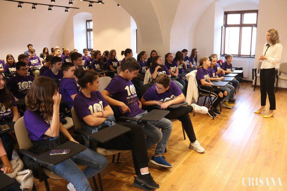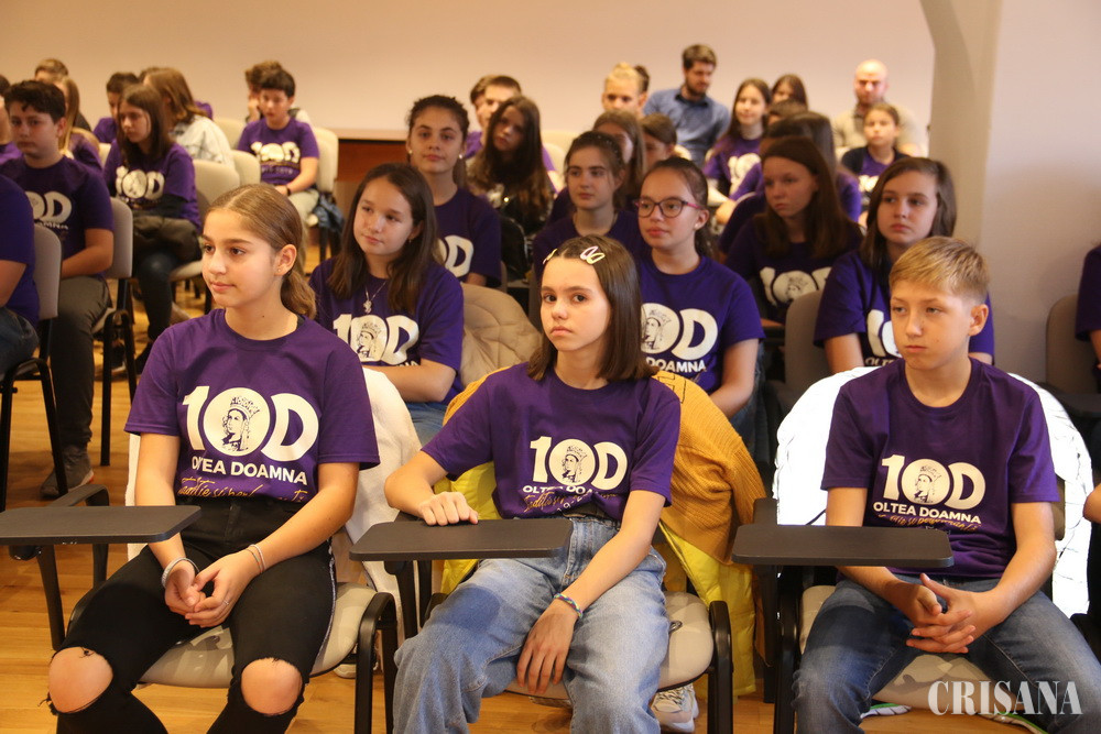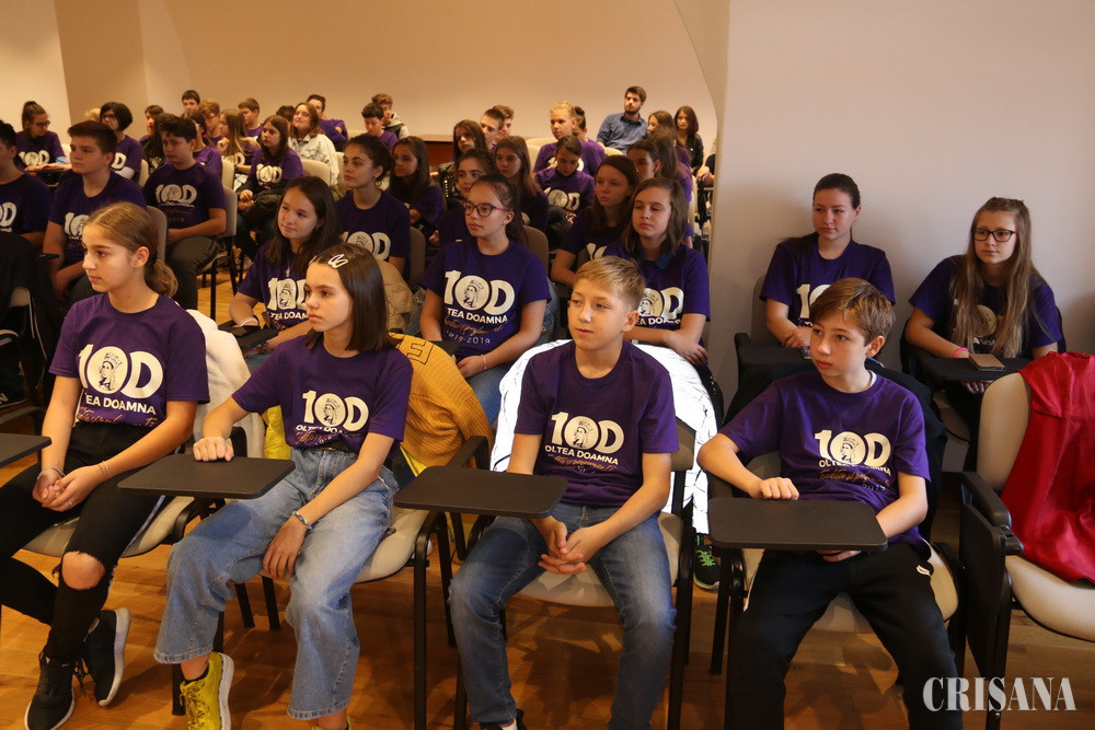 „Pe 23 iunie 1919 ia ființă, printr-un act oficial, Liceul de fete, primul liceu românesc de stat pentru fete. Numele de „Oltea Doamna” i se va atribui în 1921. Vineri, 19 octombrie, sărbătorim împlinirea a 100 de ani de la deschiderea anului școlar, atunci numărul elevelor care pășeau pe poarta școlii a fost de 332. Perioada sa de glorie a fost în interbelic, când liceul a avut o minunată grădină botanică, ce se întindea de-a lungul aleii de la intrarea străjuită de o poartă cu o arcadă în care era scris numele liceului. De-a lungul anilor, liceul a avut diverse denumiri, iar în 1959, a pierdut clasele de liceu, transformându-se în Școala generală nr. 4. Abia după anii 90, școala își recapătă vechiul nume”, le-a povestit elevilor Cristina Liana Pușcaș, fostă absolventă „Oltea Doamna”. De asemenea, la festivitatea inaugurală a fost prezentă și o altă absolventă, venită de la București, Ana-Maria Bădiceanu, nepoata liderului țărănist Nistor Bădiceanu, fost deținut politic.