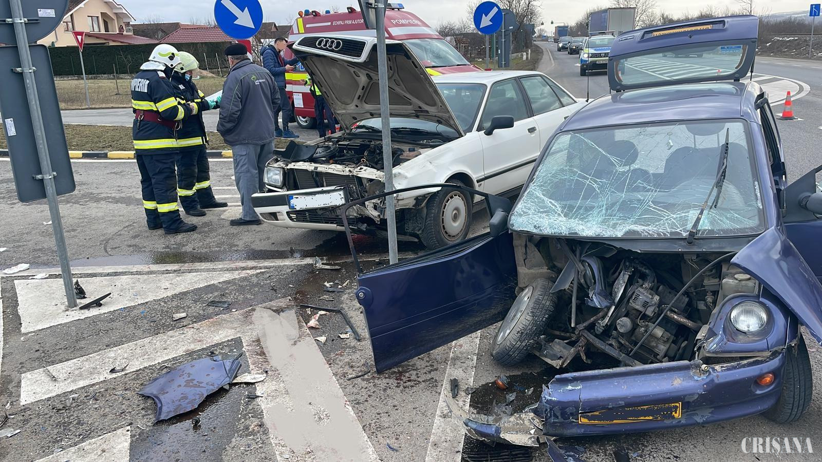Inspectoratul pentru Situaţii de Urgenţă „Crişana” al judeţului Bihor a fost sesizat, prin Sistemul Unic 112, cu privire la producerea unui accident rutier, pe DN 79, pe raza localității Drăgănești, eveniment în care au fost implicate trei persoane aflate în două autoturisme. „Pentru salvarea victimelor, la fața locului au fost mobilizate de urgență, două echipaje de pompieri militari din cadrul Secției de Pompieri Beiuș, cu o autospecială de intervenție cu modul de descarcerare și cu ambulanța SMURD a subunității, elicopterul SMURD și un echipaj al Serviciului de Ambulanță Județean”, a precizat mr. Camelia Roșca, purtătorul de cuvânt al ISU Bihor. Potrivit acesteia, în momentul sosirii la locul producerii accidentului, echipajul de descarcerare a acționat pentru evacuarea unei femei rămase încarcerată într-unul dintre autoturismele avariate, iar echipajele medicale și cel de pompieri militari paramedici au evaluat victimele și le-au acordat îngrijirile care se impuneau. Două din cele trei persoane implicate în accident au fost transportate ulterior la spital. Traficul rutier în zonă a fost îngreunat, circulându-se pe un singur sens. Polițiștii efectuează cercetări în vederea stabilirii cu exactitate a circumstanțelor în care s-a produs accidentul.