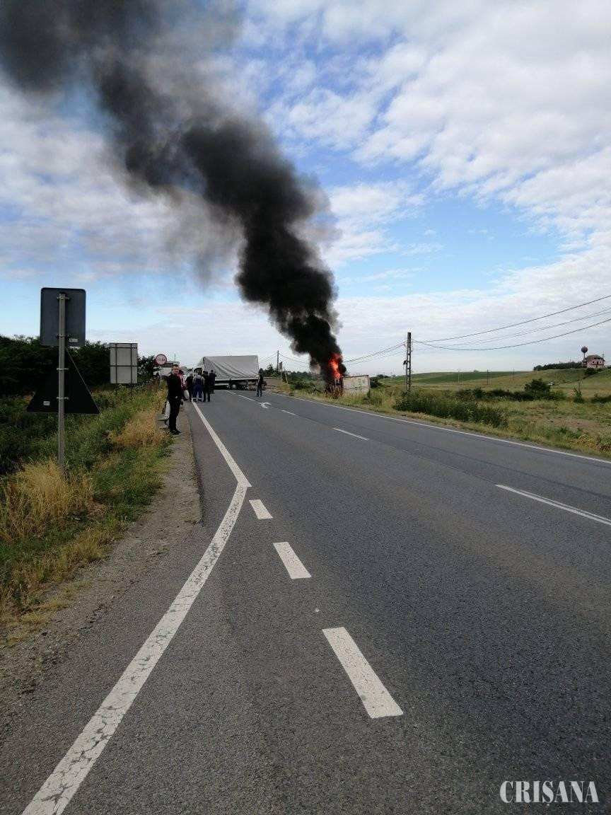 Accident între Oradea şi Leş soldat cu doi răniţi - Un tir s-a răsturnat şi a luat foc