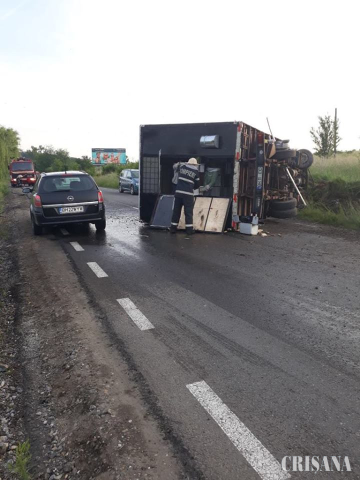 Accident rutier pe DN76 - Un TIR încărcat cu stupi s-a răsturnat