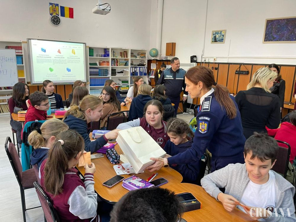Astfel, polițiștii de prevenire au derulat întâlniri cu peste 100 de copii, cu vârste cuprinse între 10 și 14 ani, de la patru instituții de învățământ din municipiul Oradea, respectiv de la Liceul Ortodox „Roman Ciorogariu”, de la Colegiul Național „Mihai Eminescu”, Colegiul Național „Iosif Vulcan” și de la Școala Generală nr.11. Copiii au fost implicați de polițiștii de prevenire într-un concurs, care a avut ca scop conștientizarea tinerilor cu privire la siguranța lor în mediul online și la capcanele pe care le pot întâlni. Concursul, în care copiii au participat împărțiți pe echipe, a avut trei probe, una teoretică, constând într-un test despre riscurile și vulnerabilitățile din mediul on-line, proba a doua a constat în realizarea unui mesaj preventiv pe tema dată, iar cea de-a treia a constat într-o dezbatere, în cadrul căreia elevii au argumentat pro și contra, în fața colegilor, despre riscurile și beneficiile utilizării Internetului.