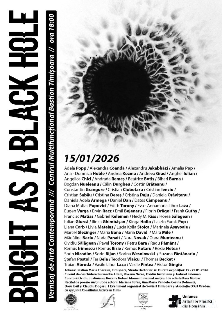 Centrul Multifuncțional Bastion din Timișoara va găzdui în data de 15 ianuarie, de la ora 18.00, vernisajul expoziției de artă vizuală contemporană „Bright as a Black Hole”.