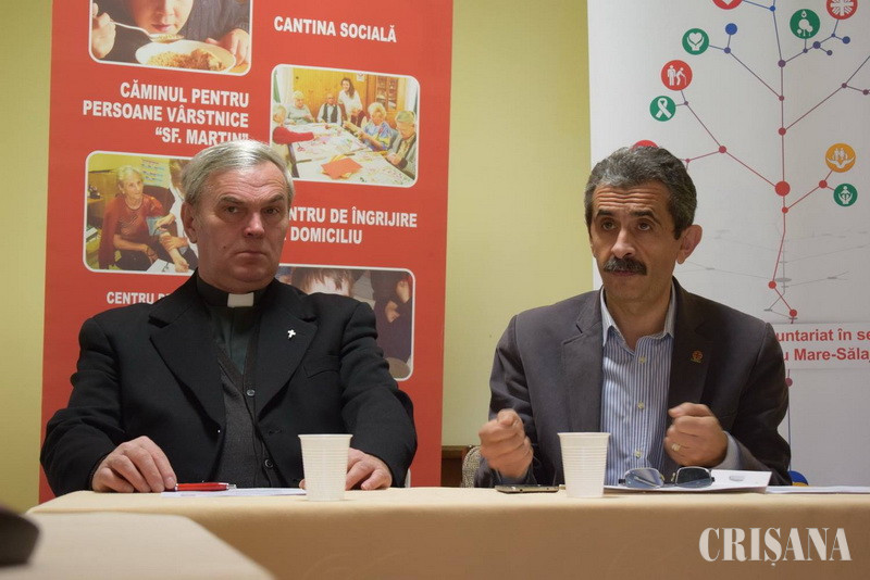 Părintele Rajna Iosif, preşedintele Asociaţiei Caritas Catolica şi Derzsi Ákos, director executiv, au prezentat miercuri, 14 decembrie, în cadrul unei conferințe de presă, activitățile asociației din ultima lună.
