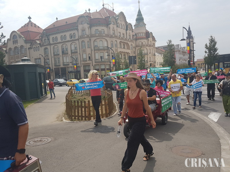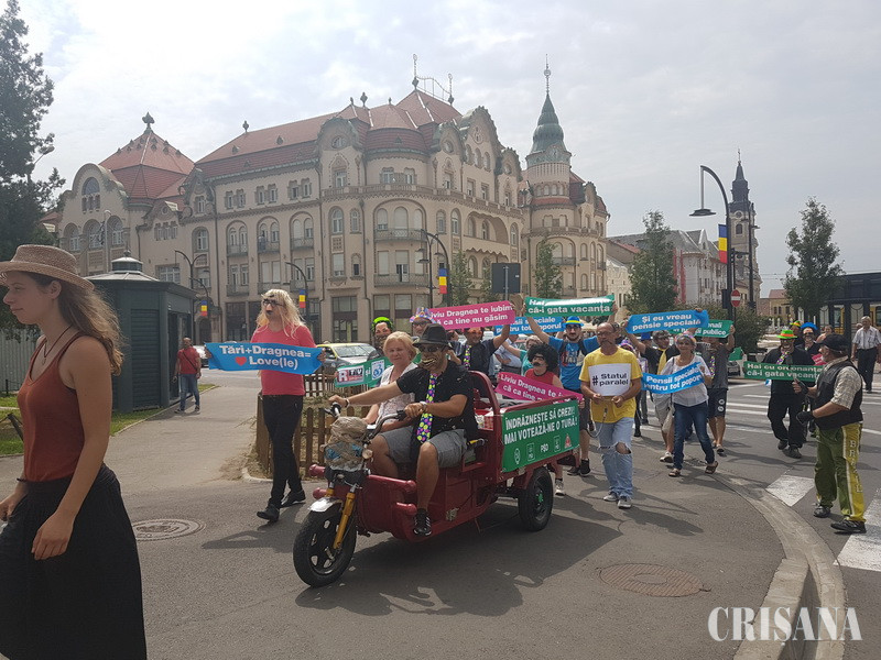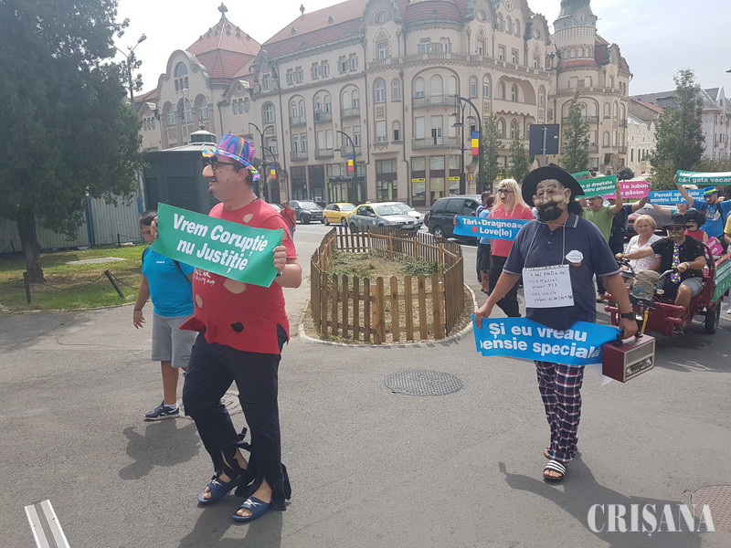 Parodia a continuat de-a lungul Corso-ului orădean, până la Magazinul Crişul, unde actorii-protestatari şi-au epuizat şi „pomenile electorale”.