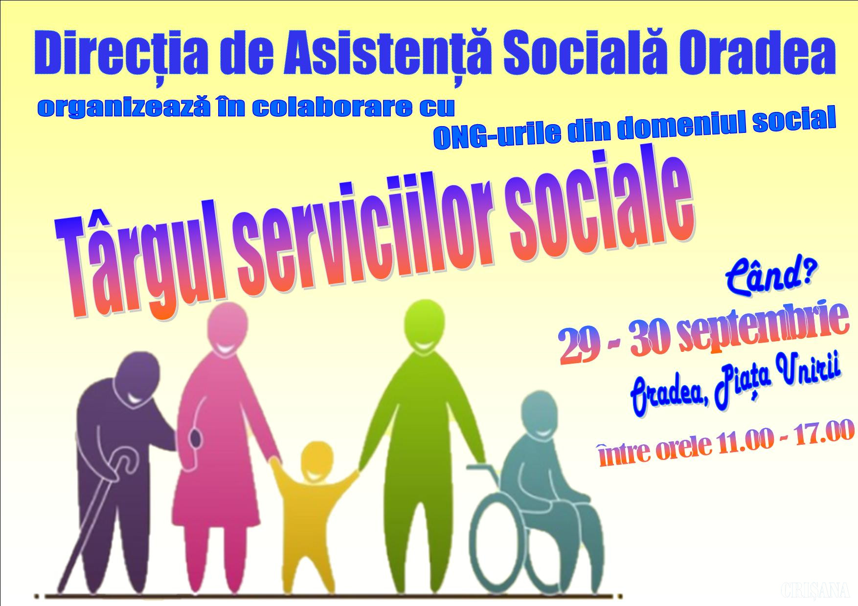 Direcţia de Asistenţă Socială Oradea, în colaborare cu furnizorii de servicii sociale din municipiul Oradea, cu sprijinul Primăriei Oradea și al Asociației pentru Promovarea Turismului din Oradea și Regiune (APTOR), invită comunitatea locală astăzi, 29 septembrie, și mâine, 30 septembrie, între orele 11.00 și 17.00, în Piața Unirii, la Târgul serviciilor sociale, un eveniment de promovare a serviciilor sociale acordate persoanelor vulnerabile din municipiu.