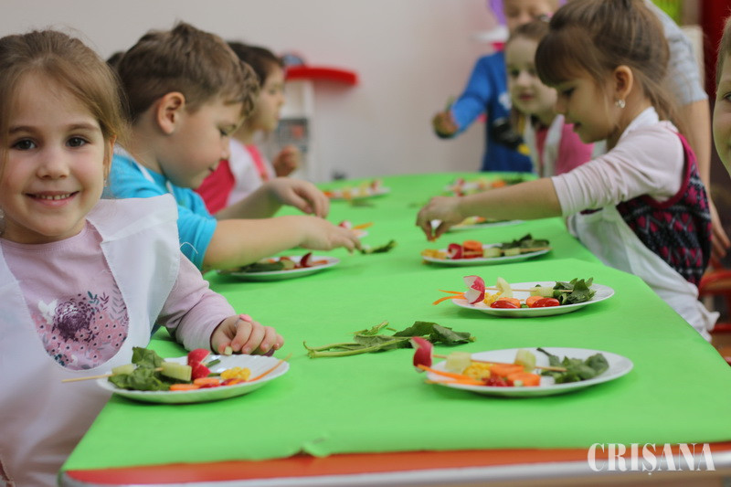 Ateliere desfășurate de Amelia Șelariu (nutriționist - dietetician) au fascinat preșcolarii, deoarece totul a fost prezentat într-o manieră distractivă, interactivă, colorată și, desigur, sănătoasă. Preșcolarii grupei mari A, coordonată de prof. Loredana Mirițescu și prof. Delia Burcă, și ai grupei mari B, coordonată de prof. Mihaela Iluța și prof. Florentina Popa, au avut parte de una dintre cele mai interesante activități. După o scurtă parte teoretică adaptată perfect vârstei copiilor, cei mici au fost puși în postura de mici bucătari și au avut ocazia să creeze mici opere de artă în farfuriile lor. În doar câteva minute, spanacul, ceapa verde, ridichile, morcovii, castravetele, mazărea, roșiile și porumbul s-au transformat într-un peisaj colorat de primăvară. Pe cât de repede au „răsărit” florile în farfuriile copiilor, pe atât de repede au și dispărut, deoarece cea mai așteptată parte a fost consumarea acestora. Atelierele de nutriție s-au desfășurat în cadrul proiectului „Participă - învață - creează”, un proiect inițiat de Asociația „Simte Magia”.