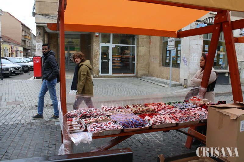 Primele mărțișoare au apărut joi, 23 februarie, pe Pietonala orădeană, cele mai ieftine putând fi cumpărate la 4 lei, iar cele mai scumpe, la 70 de lei. Începând din acest week-end, însă, numărul micilor comercianţi va creşte, prin urmare, şi oferta va fi mai bogată şi mai diversificată. Deși prețurile nu s-au schimbat față de anul trecut, cumpărătorii nu prea fac rând la tarabe.