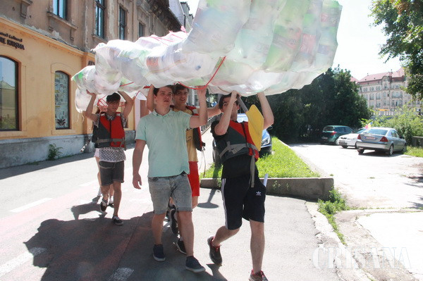 Cele două ambarcațiuni au fost făcute din zeci de flacoane adunate de elevi în cadrul Săptămânii „Școala Altfel”. Prima a fost formată din 40 de saci, iar cea de-a doua, din zece saci, confecționate astfel încât să-i țină pe drumul dintre podurile Ferdinand și Sovata.