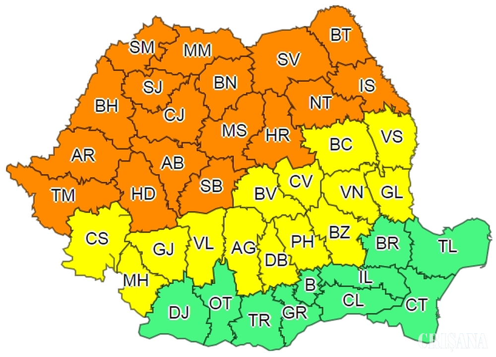 Sunt vizate de Cod portocaliu județele Satu Mare, Maramureș, Sălaj, Bihor, Arad, Timiș, Hunedoara, Alba, Cluj, Bistrița-Năsăud, Mureș, Sibiu, Harghita, Suceava, Neamț, Botoșani și Iași.