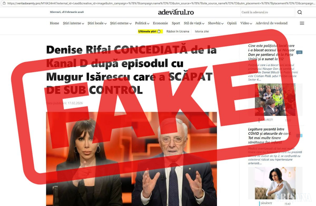 „În ultimele zile, în mediul online au fost publicate postări tip deepfake care îl implică pe guvernatorul Băncii Naționale a României, Mugur Isărescu. Conținutul clonează website-ul și pagina dintr-o rețea de socializare a unui cunoscut ziar generalist (Adevărul). Materialul redă un fals transcript al unei pretinse participări a guvernatorului BNR la un interviu într-un show de televiziune (40 de întrebări cu Denise Rifai)”, se menționează într-un comunicat al băncii centrale.