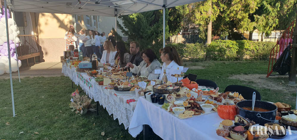 Fiecare grupă a grădiniței a avut un stand amenajat, preponderent din baloți de paie îmbrăcat cu straiele bunicilor de odinioară, împodobit cu crizanteme și știuleți de porumb, străjuiți de manechini îmbrăcați în costume populare. Dovleci sculptați sau colorați, aranjamente florale, unul mai deosebit decât celălalt, au împodobit curtea grădiniței. Fiecare grupă și-a amenajat propriul stand. Mâncarea a fost din belșug, de la diferitele platouri țărănești la dovleac copt, sarmale, plăcinte, bogracs făcut la ceaun, diferite salate, zacuscă și chiar pâine cu untură și ceapă. Spre bucuria celor mici, prăjiturile și dulciurile au fost prezente într-o paletă impresionantă, printre care putem aminti gogoșile, brioșele, brânzoaicele, prăjitura cu mere, torturi și multe, multe alte bunătăți. Cadrele didactice au avut în acest an o ținută în culorile alb și albastru, acestea intrând împreună în curtea grădiniței, cântând, spre bucuria și surprinderea tuturor, un cântecel. După ce au fost îndelung aplaudate de către public, părinții arătându-și și pe această cale aprecierea față de acestea, fiecare cadru didactic s-a îndreptat spre standul propriu. În acest an a fost organizat și un concurs cu jurizare, urmând a fi premiate cele mai gustoase bucate. Atmosfera a fost întreținută de muzică populară cu interpreți locali, care i-au făcut pe participanți să întindă hora în curtea grădiniței. Bineînțeles că și la această ediție a avut loc o strângere de fonduri în scop caritabil, de această dată, pentru un băiețel de 5 ani, înscris la Allegria, care la vârsta de 2 ani a fost diagnosticat cu o formă severă de autism, părinții acestuia dorind să îl ducă la Viena pentru transplant de celule Stem, un tratament costisitor care ar putea ameliora simptomele autismului, îmbunătățind funcțiile cognitive și comportamentale ale copilului. În acest sens, a fost pusă la fiecare stand câte o cutie pentru strângerea donațiilor, banii revenindu-i acestui băiețel, contribuind astfel cu o parte din suma necesară pentru terapia de care are mare nevoie. Suma strânsă a fost în valoare de 21.832 lei, iar pentru cei care vor să îl ajute pe micuț, pot face donații în contul RO68CECEB00008RON0928549, titular cont, Fekete Norbert.