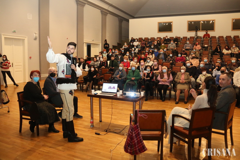 Muzeul Țării Crișurilor, Universitatea din Oradea - Facultatea de Arte și Muzeul Municipal Beiuș au organizat un eveniment inedit, joi seara, la sediul MTC. Vedeta seratei a fost cojocul cu bumbălaci, o piesă etnografică rară care a fost prezentată de dr. Simona Ioana Bala.