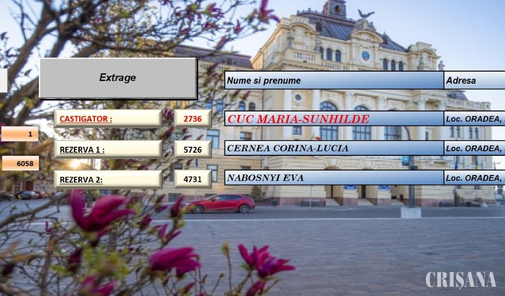 Din cei 6.058 de contribuabili care au plătit integral impozitul online, prin extragere computerizată a fost desemnată câștigătoare doamna Cuc Maria Sunhilde, cu domiciliul pe strada Armatei Române. Aceasta va fi înștiințată printr-o adresă transmisă la domiciliu că își poate ridica voucherul în termen de 30 de zile, de la sediul Primăriei. Voucherul îi oferă o zi de acces la Aquaparkul Nymphaea pentru 2 adulți și 2 copii sub 14 ani.