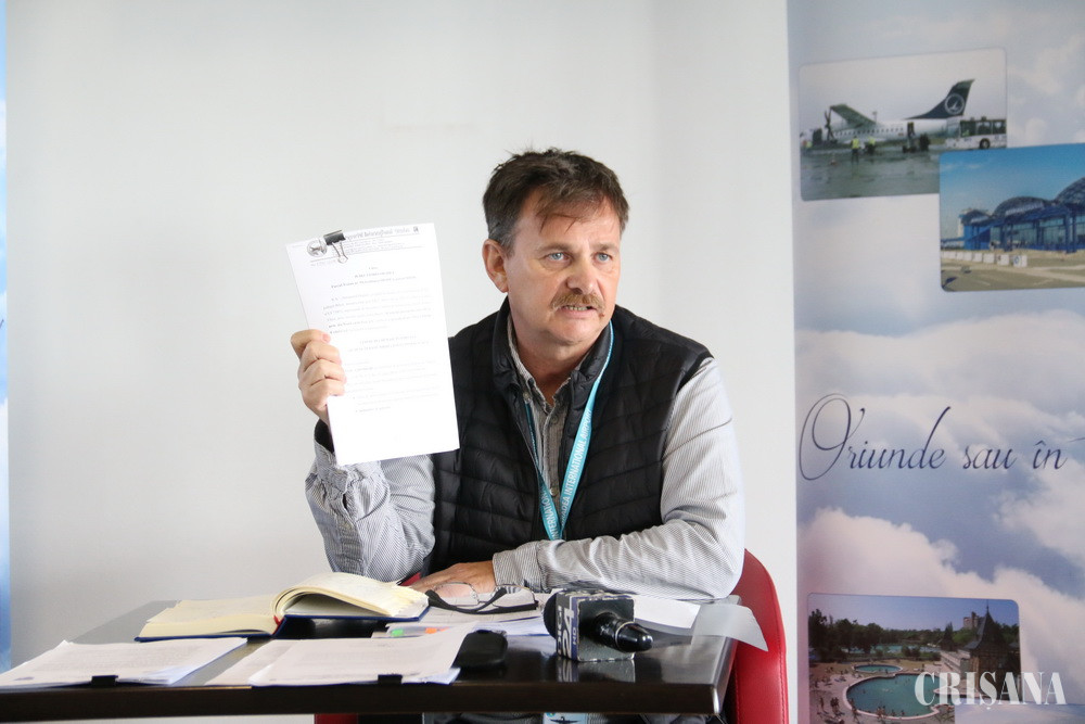 Șeful Consiliului de Administrație al Aeroportului Internațional Oradea, Bimbó-Szuhai Tibor, a ținut astăzi o conferință de presă în care a prezentat șirul evenimenteleor din ultima perioadă în ceea ce privește soarta aeroportului, după selectarea concurenților pentru șefia unității și ca răspuns la declarațiile fostului șef Gheorghe Pasc. Bimbó a spus că Pasc s-a ales cu două plângeri, una la poliție și alta la Judecătoria Oradea.