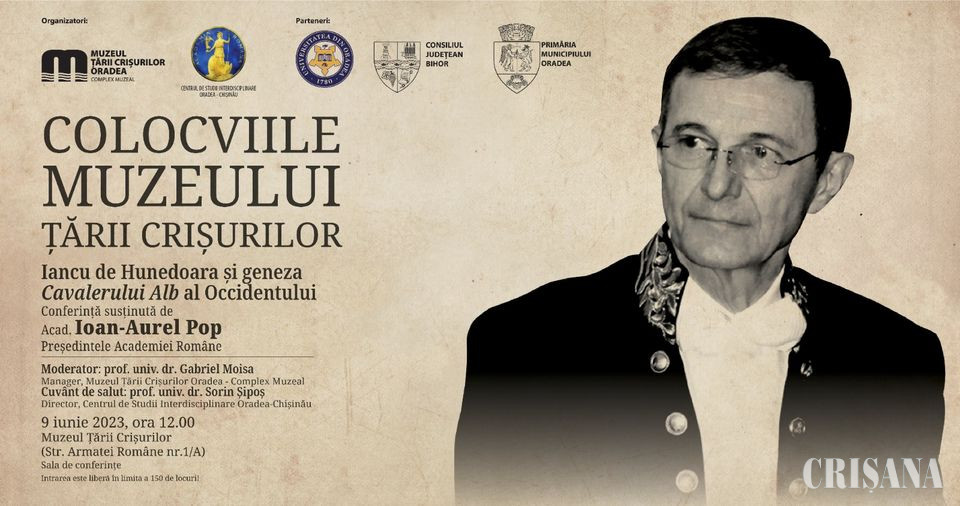Muzeul Ţării Crişurilor Oradea - Complex Muzeal, împreună cu Centrul de Studii Interdisciplinare Oradea-Chișinău al Academiei Române și în parteneriat cu Universitatea din Oradea, Consiliul Județean Bihor și Primăria Municipiului Oradea, organizează conferința “Iancu de Hunedoara și geneza Cavalerului Alb al Occidentului”, susținută de către Acad. Ioan-Aurel Pop, Președintele Academiei Române.