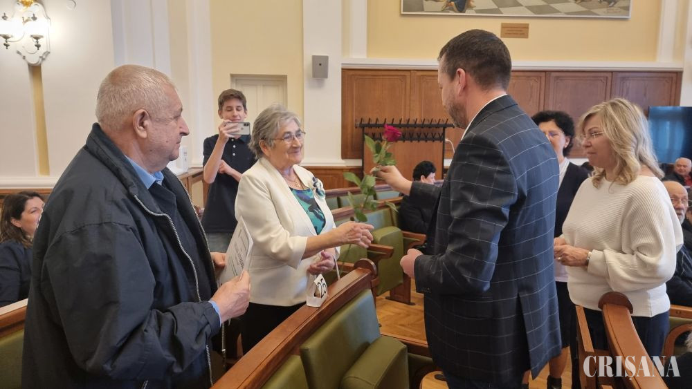 „Vă mulțumesc că sunteți prezenți azi în sala mare a Primăriei pentru a celebra și a aniversa un moment foarte important în viața dumneavoastră și a comunității orădene. Cei 50 de ani pe care îi aniversați sunt foarte prețioși, de-a lungul acestor de ani ați demonstrat unul față de celălalt respect, fidelitate, încredere, sprijin moral, ceea ce este o dovadă că o familie poate trece împreună și peste bune, și peste rele, astfel încât iată-vă azi aici, sărbătorind acest moment. Sunteți un model, un exemplu pentru noi toți, reprezentați o cărămidă pentru comunitatea orădeană, iar în numele Primăriei Oradea și al meu personal doresc să vă mulțumesc pentru exemplul pe care-l dați comunității noastre și vă doresc multă sănătate, să fiți fericiți și să vă iubiți așa cum v-ați iubit și până acum! Vă mulțumesc că ați dat curs invitației noastre de a sărbători împreună Nunta de Aur. Această festivitate se organizează din anul 2008, iar dumneavoastră sunteți primii care ați primit un premiu în bani în valoare de 1.000 lei, valoarea acestui premiu fiind până acum 500 de lei. Este foarte important pentru noi că ne oferiți aceste modele de viață și cred că trebuie urmate de noi toți", a spus primarul Florin Birta în deschiderea festivității. Organizat de Primăria Oradea prin Compartimentul de Stare Civilă, evenimentul a constat în premierea a 25 de familii care au împlinit 50 de ani de căsătorie neîntreruptă şi care au domiciliul în municipiul Oradea, prin acordarea unei diplome aniversare, însoțită de flori și de un premiu în bani în cuantum de 1.000 lei.