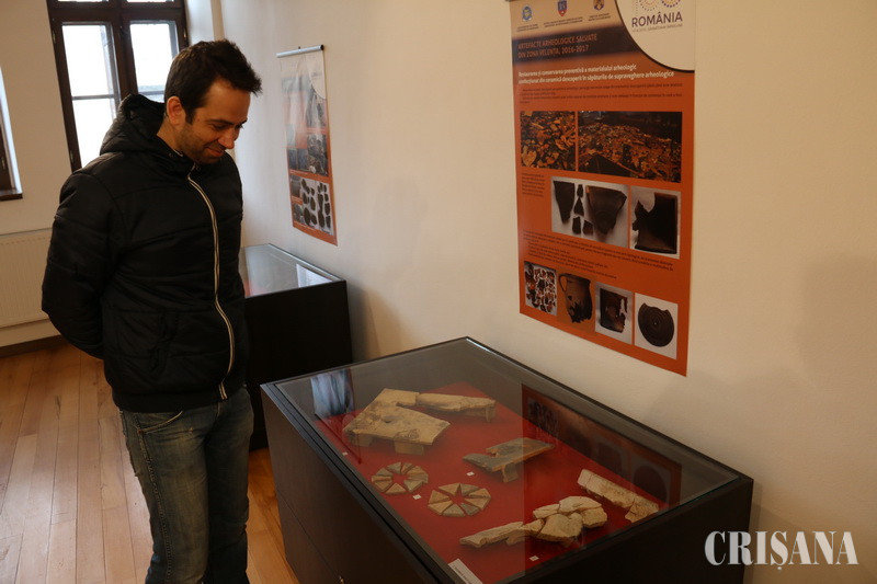 Fragmente reprezentative, restaurate, fac obiectul expoziţiei „Artefacte arheologice salvate din zona Velența, 2016-2017”, găzduită în incinta Muzeului Oraşului Oradea, Palatul princiar, corp A, parter.