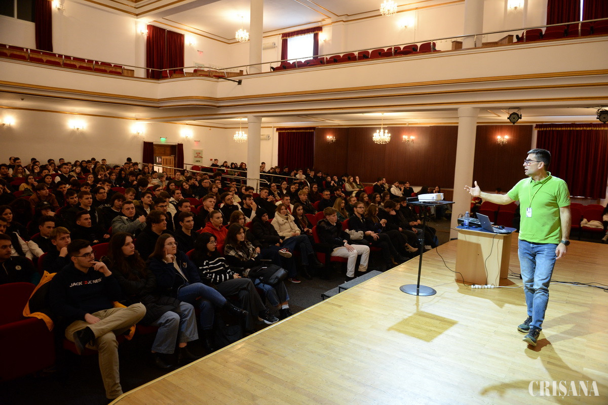 Sala mare a Filarmonicii de Stat din Oradea a fost plină ieri cu elevi din ultimii doi ani de liceu, veniți să învețe cum să devină șoferi responsabili. Fostul campion național de raliuri, Bogdan Marișca, șeful SMURD, Hadrian Borcea, și un reprezentant al poliției le-au explicat și arătat elevilor cum o secundă poate face diferența între viață și moarte.