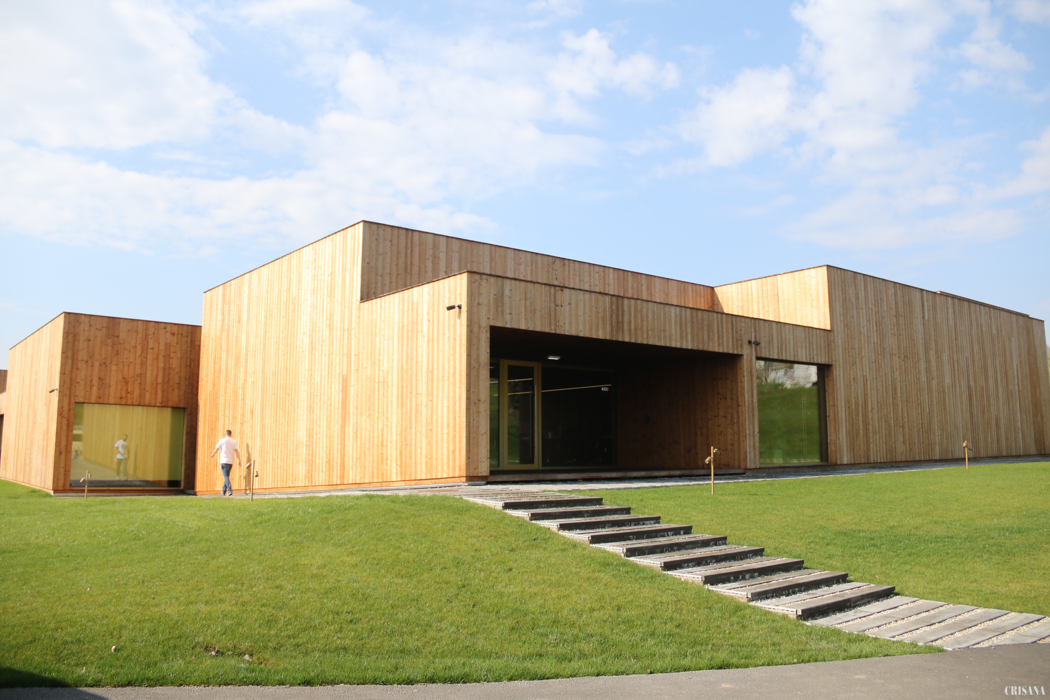 Are aproape 2.400 de metri pătrați utili, fundațiile conțin peste 2.000 de metri cubi de pietriș din spumă de sticlă reciclată, structura din CLT e făcută din 819 panouri prefabricate realizate în Austria, cu grosimi de la 120 mm la 280 de mm, realizate integral prefabricat în cel mai mic detaliu, durata totală de producție în fabrică a fost de patru zile, patru ore durata de producție pentru un TIR, au fost aduse 25 de tiruri cu piesele aferente, sunt în total 890 de metri cubi de lemn care înseamnă 490 de copaci maturi, brad și molid, adică 1.96 copaci per utilizator considerând 250 de utilizatori finali, au fost economisite 1.600 kg C02/metru cub de material dacă ar fi fost făcută suprastructura din beton și zidărie, adică 1.424 de tone de C02 din procesul de construire.