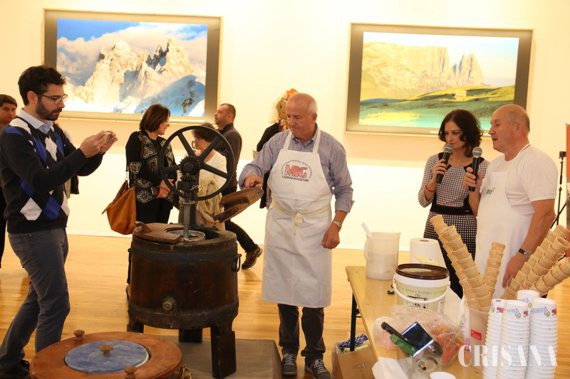 În cadrul vernisajului, Fortunato Calvi şi Sandro Pol, maeștri gelatieri, au preparat pe loc pentru toți cei prezenți înghețată de lămâie și vanilie, apelând la instrumente ce se foloseau în urmă cu 100 de ani, când nu exista energie electrică.