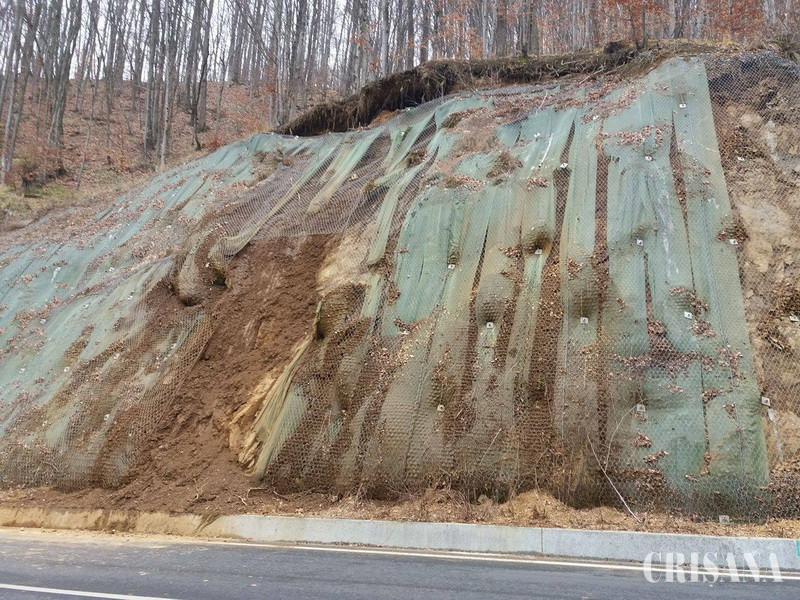 Şoferii care circulă pe DN 1 H Aleşd - Zalău, în special cei care tranzitează sectorul de drum Aleşd - Şinteu (Nova Huta), ne-au semnalat că alunecările de teren sunt tot mai frecvente. În ultimii trei ani, după fiecare ploaie mai abundentă plasele de oţel întinse pe versanţi sunt rupte de alunecările de teren, mari cantităţi de pietriş şi bucăţi de stâncă ajungând pe şosea. De câteva zile dealurile abrupte din care constructorii au „muşcat” porţiuni extinse pentru lărgirea carosabilului şi apoi au învelit versanţii în plase de protecţie au luat-o din nou la vale. Chiar şi în porţiunile întărite cu gabioane s-au produs alunecări de teren masive, tone de pământ şi buşteni dezrădăcinaţi ajungând la baza zidurilor, existând pericolul de a se prăvăli pe carosabil.