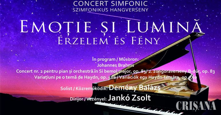 Programul acestui concert se bazează pe lucrările lui Johannes Brahms, și anume Variațiuni pe o temă de Haydn, op. 56, ce poartă și denumirea de Variațiunile Sfântului Anton, deoarece se bazează pe o temă din Coralul Sfântului Anton. Lucrarea de față conține opt variațiuni, derivate din tema de bază, la care se adaugă finalul. Piesa a fost publicată în anul 1873, în două variante: prima pentru două piane, iar cea de-a doua pentru orchestră, aceasta din urmă putând fi ascultată de publicul orădean. Primele două concerte de pian compuse de Brahms au fost scrise la o distanță de 22 de ani. La Concertul nr. 2 pentru pian și orchestră în Si bemol major, op. 83 compozitorul a lucrat timp de trei ani, ceea ce dezvăluie strictețea și critica de sine. Corifeul acestui concert este Jankó Zsolt, dirijor permanent al Filarmonicii de Stat Oradea, alături de solistul invitat Demény Balázs, pianist.