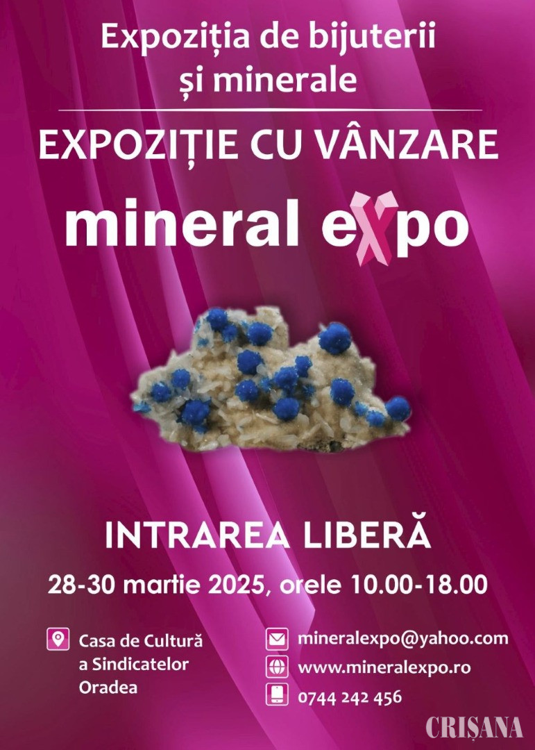Oradea, un oraș renumit pentru frumusețea sa arhitecturală și energia sa vibrantă, devine punctul de întâlnire al pasionaților de minerale, cristaloterapie și bijuterii cu pietre naturale. În cadrul expoziției, vizitatorii vor putea interacționa cu specialiști în cristaloterapie, care vor oferi informații despre utilizarea pietrelor semiprețioase pentru armonizare, protecție și echilibru energetic. Cei interesați vor avea ocazia să admire, achiziționeze și învețe despre puterea cristalelor, descoperind piese rare, pietre prețioase și semiprețioase, dar și bijuterii deosebite, toate reunite într-o expoziție spectaculoasă.