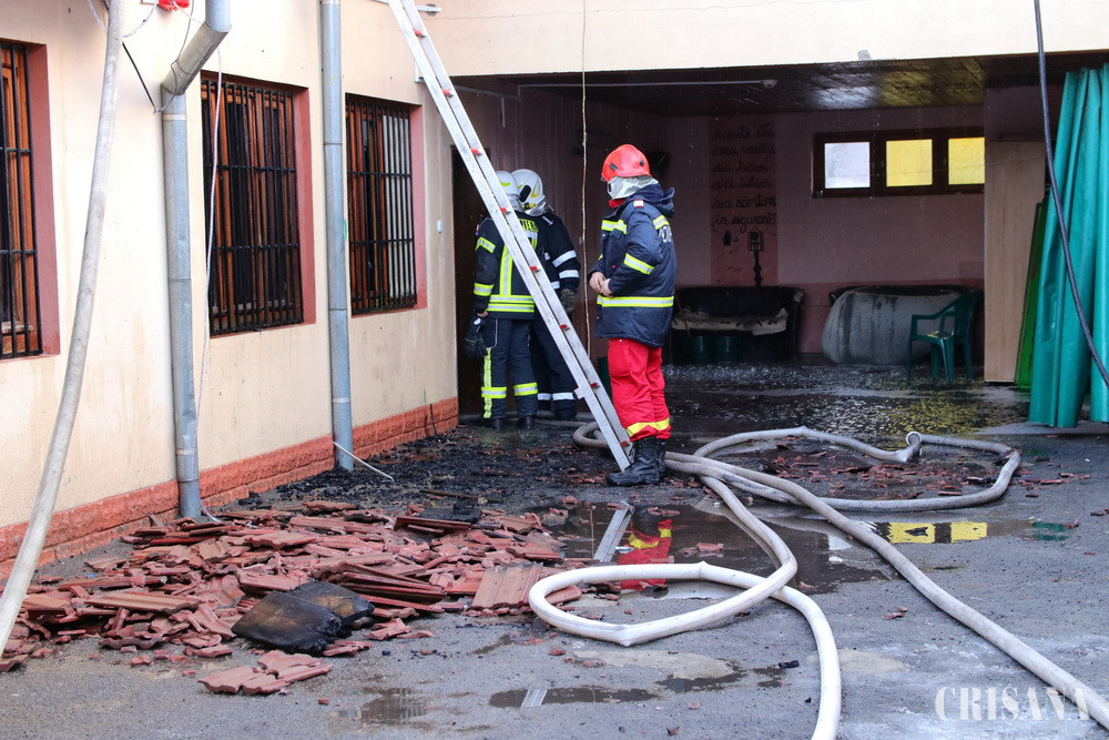 Pompierii militari orădeni au intervenit pentru stingerea unui incendiu produs la Centrul de plasament pentru copii cu dizabilități, situat pe strada Albinelor din Oradea. „Apelul prin Sistemul Unic 112, care sesiza producerea unui incendiu la Centrul de plasament pentru copiii cu dizabilități de pe strada Albinelor din Oradea, a fost primit în dispeceratul Inspectoratului pentru Situații de Urgență “Crișana” al județului Bihor, în dimineața zilei de joi, 17 ianuarie a.c., la ora 07.55, moment în care au fost alertate echipajele de intervenție ale Detașamentului 2 de Pompieri Oradea. În momentul sosirii forțelor de intervenție, flăcările se manifestau violent la mansarda clădirii, pe o suprafață de circa 250 de metri pătrați, la acoperiș și parțial la parterul construcției”, a precizat mr. Camelia Roşca, purtătorul de cuvânt al ISU Bihor. La locul evenimentului a fost mobilizat un efectiv de 27 de subofițeri pompieri și 5 ofițeri din cadrul Detașamentelor 1 și 2 Oradea (patru echipaje din cadrul Detașamentului 2 de Pompieri Oradea și ulterior, un echipaj din cadrul Detașamentului 1 de Pompieri Oradea), care, sub coordonarea prim-adjunctului inspectorului șef al Inspectoratului pentru Situații de Urgență “Crișana”, maior Csilik Alexandru, au acționat cu 5 autospeciale de lucru cu apă și spumă, intervenind pentru localizarea incendiului atât din exteriorul, cât și din interiorul clădirii. „Incendiul a fost localizat în jurul orei 08.35, fiind lichidat la ora 09.15. Din fericire, nu au existat persoane rănite, atât copiii din cadrul Centrului de plasament, cât și angajații neaflându-se în clădire în momentul producerii evenimentului. Cauza probabilă a evenimentului și pagubele înregistrate urmează a fi stabilite în urma cercetărilor aflate în desfășurare”, a mai precizat mr. Camelia Roşca. În clădire locuiau opt copii cu vârste cuprinse între 7 şi 18 ani, care, în momentul izbucnirii flăcărilor, se aflau în maşină, în drum spre şcoală. Până la reabilitarea clădirii, ei vor fi mutaţi într-o altă locaţie. „Cei 8 beneficiari ai serviciilor DGASPC Bihor, tineri cu vârste cuprinse între 7 și 18 ani erau la aceea oră îmbarcați în microbuz, urmând a fi transportați la școli. Copiii și personalul au fost în afara oricărui pericol. În cursul orelor amiezii, tinerii vor beneficia de consilierea unui psiholog, iar până la remedierea situației vor fi cazați la Centrul de plasament de tip familial Casa Curcubeului. Facem precizarea că declanșarea incendiului a fost semnalizată de echipamentul de protecție împotriva incendiilor și, totodată, clădirea de pe str. Albinelor nr. 8 avea asigurare”, a transmis Adrian Simon, purtătorul de cuvânt al Consiliului Judeţean Bihor.