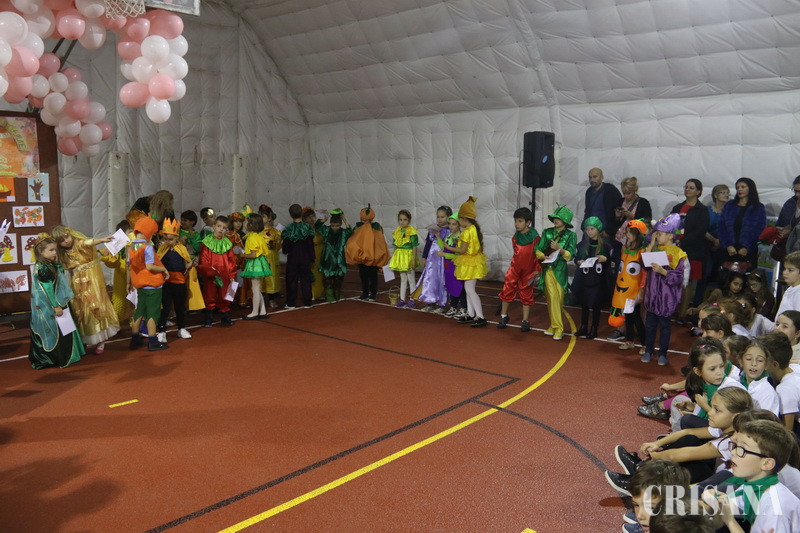Miros de fructe şi legume coapte, în sala de sport a Şcolii Gimnaziale „Nicolae Bălcescu”, din Oradea, unde vineri, 19 octombrie, a avut loc încheierea proiectului „Festivalul Toamnei”, ediția 19.