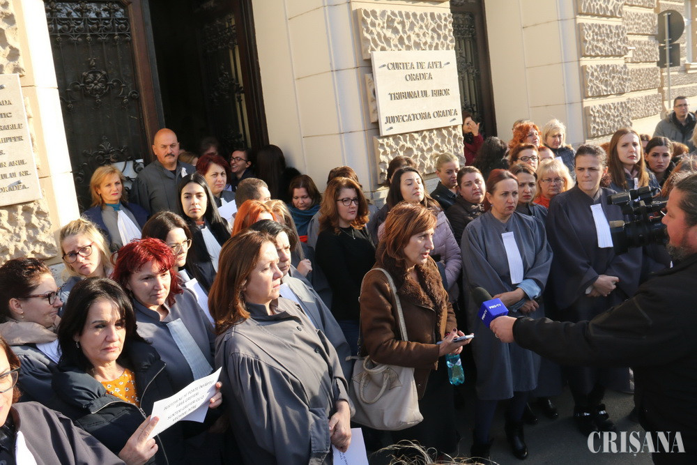 Judecătorii bihoreni susţin că eliminarea pensiei de serviciu a magistraţilor este de natură să aducă atingere gravă principiului independenţei, dar, spre deosebire de colegii lor din ţară, care începând de ieri, au suspendat activitatea, încă nu vor protesta. În schimb, grefierii şi-au întrerupt activitatea, ieri, pentru două ore, ameninţând cu blocarea instanţelor începând din 27 ianuarie.
