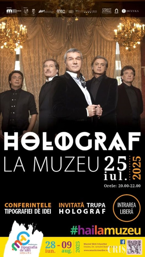 Evenimentul, intitulat „Holograf la Muzeu”, are loc astăzi, 25 iulie, începând cu ora 20.00, în parcul Muzeului Țării Crișurilor.