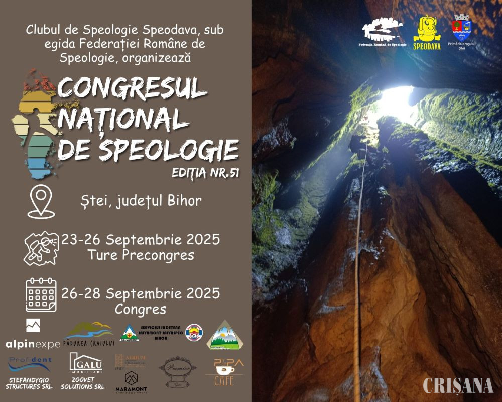 Clubul de Speologie Speodava-Ștei, sub egida Federației Române de Speologie, organizează Congresul Național de Speologie, ediția nr. 51.