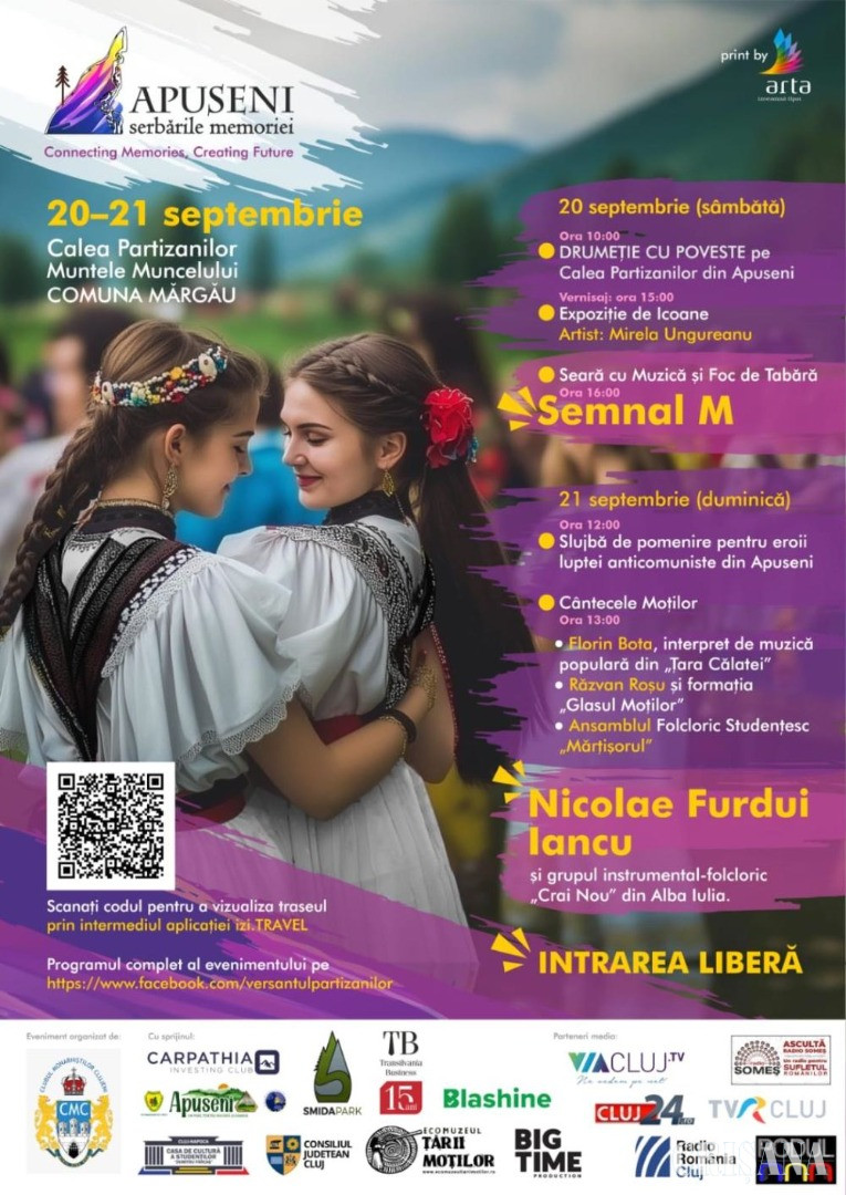 De menționat că, pe tot parcursul celor două zile, participanții vor putea degusta preparate specifice Apusenilor: plăcinte moțești, ceaunul partizanilor, balmuș și alte bunătăți locale.