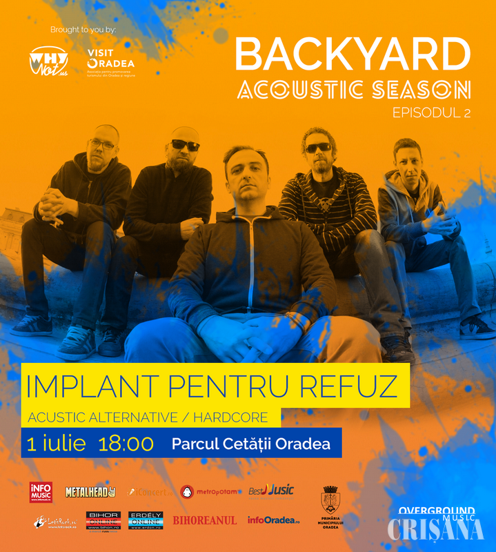 Implant pentru refuz cântă acustic pe 1 iulie în Parcul Cetății Oradea în cadrul seriei de concerte Backyard Acoustic Season. Biletele se găsesc în avans pe iabilet.ro și pe biletmaster.ro și costă 25 de lei în avans și 30 de lei la intrare.