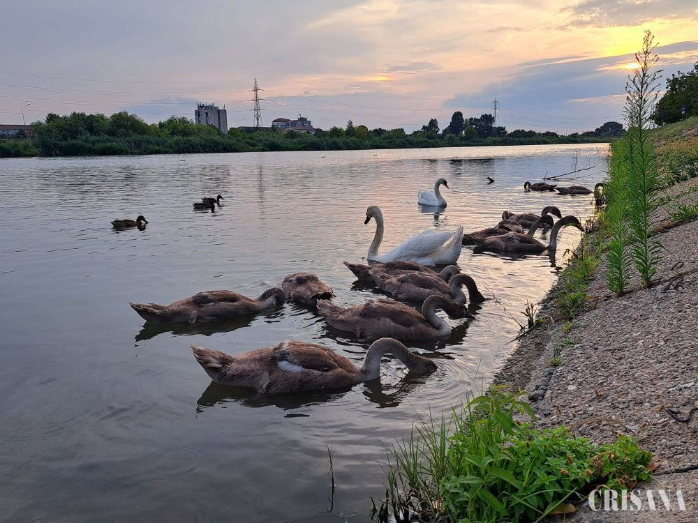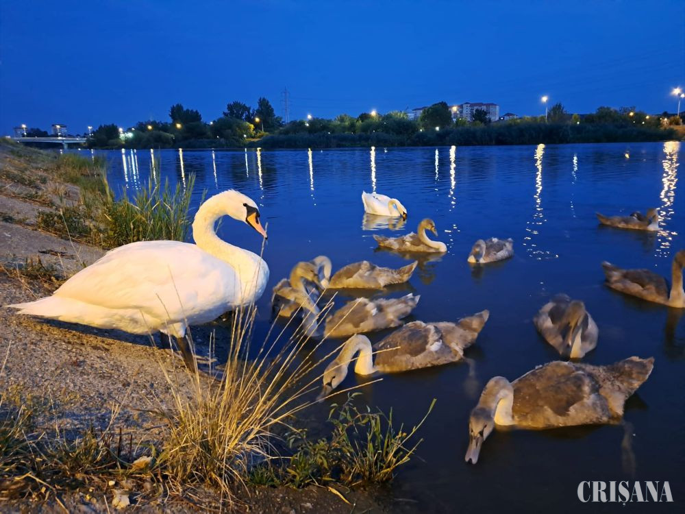 Plimbările pe malul Crișului, la ceas de seară, au devenit o obișnuiță pentru orădenii de toate vârstele, iar minunatele lebede fac parte din peisaj.