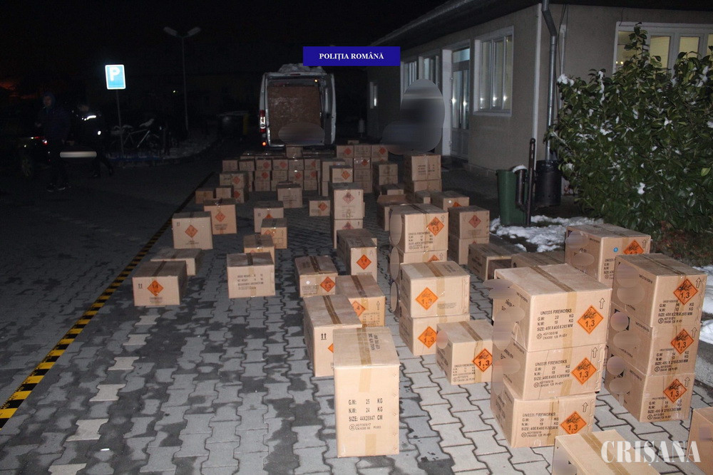 Între localităţile bihorene Roşiori şi Diosig, polițiștii Serviciului Arme Explozivi și Substanțe Periculoase împreună cu polițiștii Secției nr.3 de Poliție Rurală Biharia din cadrul au depistat, luni, în trafic un bărbat de 44 de ani, din Timișoara, reprezentant al unei societăți comerciale din județul Timiș, în timp ce conducea o autoutilitară cu care transporta 246 de baxuri cu articole pirotehnice din categoriile F2, F3, F4, care conțineau aproximativ 960.000 de petarde și 600 de baterii de artificii. Toate sunt obiecte pirotehnice destinate a fi deținute sau folosite exclusiv de către pirotehnicieni, iar timişoreanul nu era autorizat în acest sens și nu a putut prezenta documentele legale privind regimul materiilor explozive. Acesta este bănuit că ar fi intenționat să comercializeze obiectele pirotehnice respective către persoane fizice neautorizate. În cauză a fost întocmit dosar penal, iar polițiștii Serviciului Arme Explozivi și Substanțe Periculoase din cadrul IPJ Bihor efectuează cercetări sub aspectul comiterii infracțiunii de „comercializare către publicul larg a articolelor pirotehnice, destinate a fi utilizate de către pirotehnicieni”. Întreaga cantitate de articole pirotehnice, în valoare totală de 53.160 lei, a fost ridicată în vederea confiscării.
