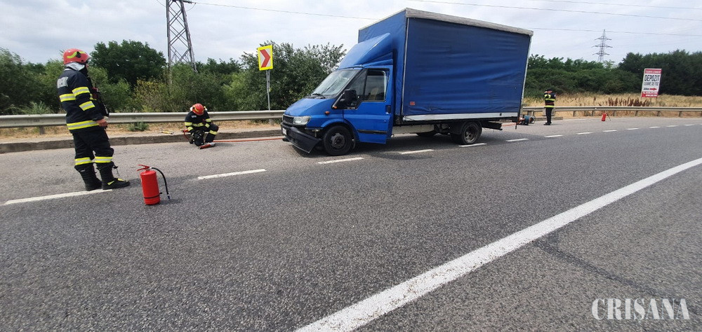 Pompierii au intervenit pentru ridicarea autoutilitarei și evacuarea buteliei deteriorate. Nu au fost persoane rănite.