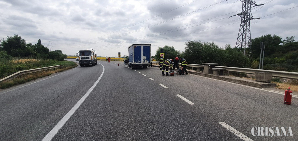 Intervenţie a pompierilor pe DN 19 - 14 butelii au căzut dintr-un camion