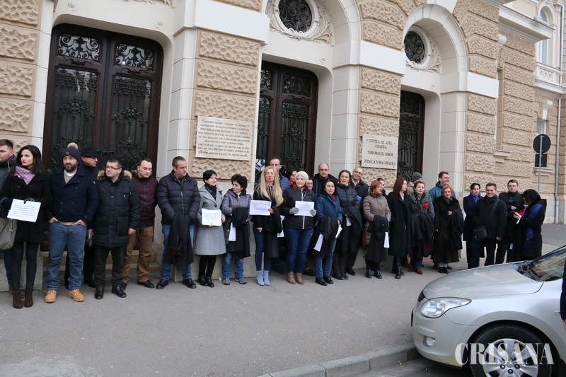 Aproximativ 35 de judecători şi procurori din Oradea dar şi din Marghita, au protestat, ieri, preţ de jumătate de oră, în faţa Palatului de Justiţie din Oradea. Magistraţii și-au manifestat astfel dezacordul față de modificările adoptate de Camera Deputaților la pachetul legilor Justiției și față de amendamentele propuse la Codul penal și Codul de procedură penală.