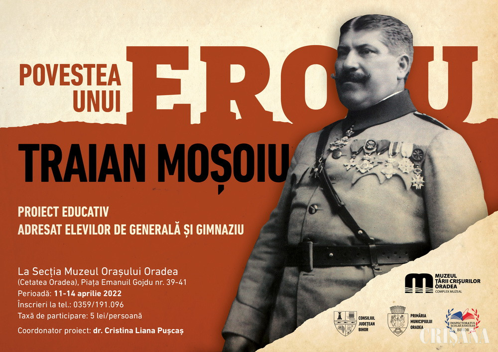 În perioada 11 - 14 aprilie, se va desfăşura la Muzeul Oraşului Oradea un nou proiect dedicat elevilor: Povestea unui Erou - Traian Moşoiu. Cadrele didactice şi elevii pot participa în baza înscrierilor.