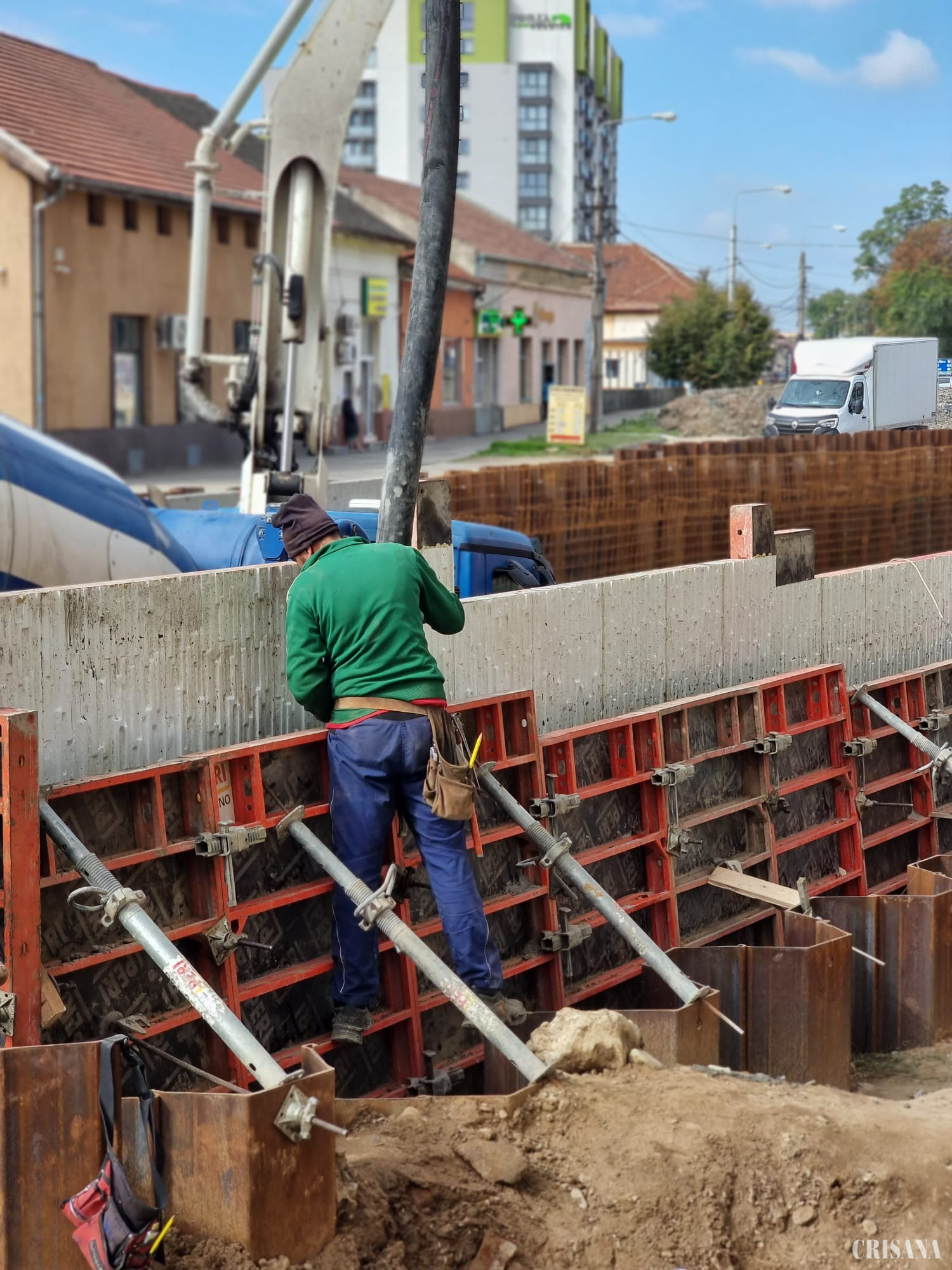 Lucrările de la pasajul rutier din Piața Cetate - A început turnarea pereților
