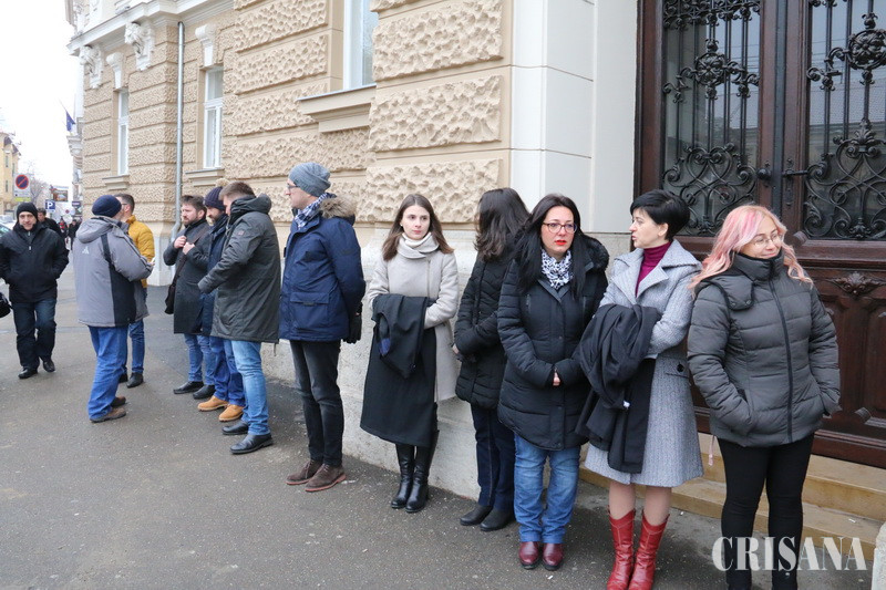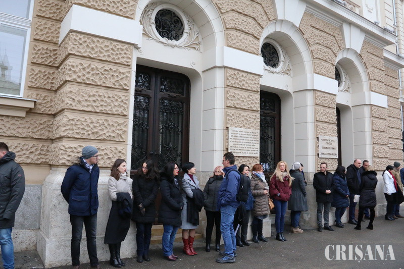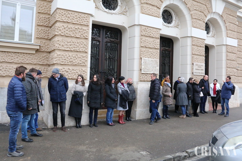 Deși a fost frig, în jur de 20 de magistrați au ieșit vineri, 22 decembrie, în fața Tribunalului Bihor pentru a protesta împotriva modificărilor Codului penal și al Codului de procedură penală. Ca noutate, la acest protest au participat și auditorii.