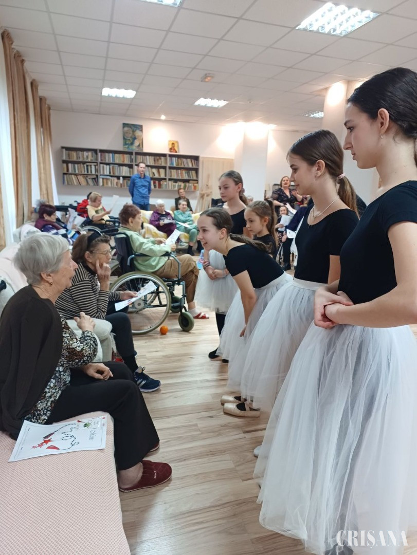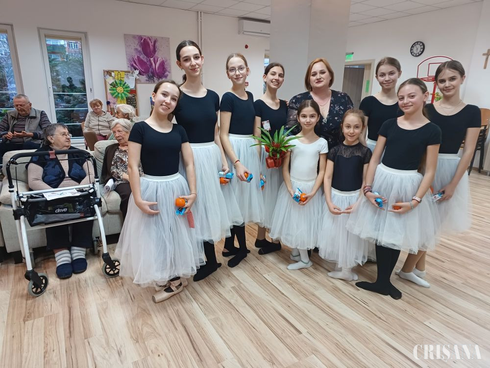 „Noi am mai fost la acești vârstnici chiar în pandemie, iarna, și, chiar dacă nu am putut dansa înauntru, le-am oferit niște momente frumoase, dansând afară, în curte. Ei ne-au privit ori de la geam ori au ieșit la balcon sau la intrarea în cămin. Au fost și atunci, ca și acum, bucuroși că, deși nu erau vremuri prea bune, am reușit să aducem bucurie și emoție deopotrivă prin acțiunea noastră”, a precizat Ana Maria Toth, coordonatoarea tinerelor balerine. Balerinele cu vârste între 9 şi 15 ani (Neli, Hanna, Sofia, Anastasia, Ania, Sofia, Giulia, Iarina și Ema) le-au pregătit vârstnicilor momente deosebite. Aceștia au putut asculta și viziona dans clasic (valsul florilor, variația Prințesa Florina, variația Lebedele Mari și Lebădă neagră), dans contemporan și jazz. Ultimul moment a fost surpriza de 8 Martie, un dans pe muzica interpetată de Ana Cernicova Uzun și intitulat sugestiv „Mama”. Emoțiile la final au fost copleșitoare pentru toți cei prezenți atât pentru vârstnici, cât şi pentru personalul căminului. După programul artistic balerinele au împărțit mărţişoare, desene și fructe.