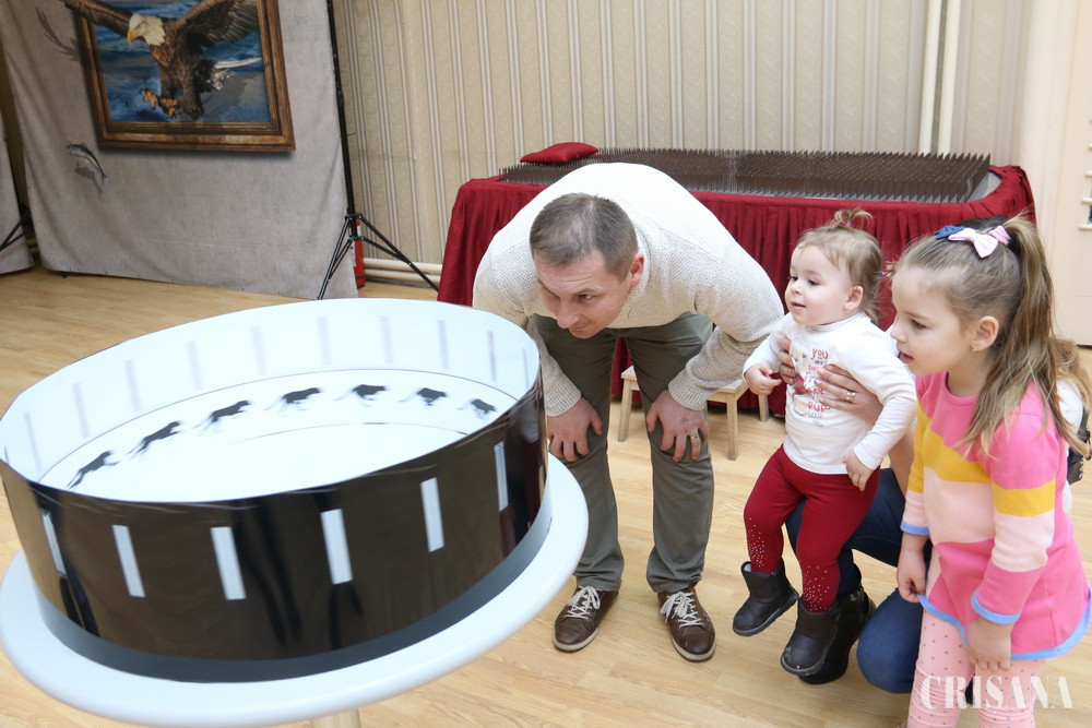 Aproximativ 200 de persoane au vizitat ieri Muzeul Iluziilor, printre vizitatori numărându-se și o tânără familie din Oradea. Dan Colțea, de la Asociația Astronomică Pluto, le-a explicat acestora cum funcționează iluziile prin contactul cu obiectele expuse.