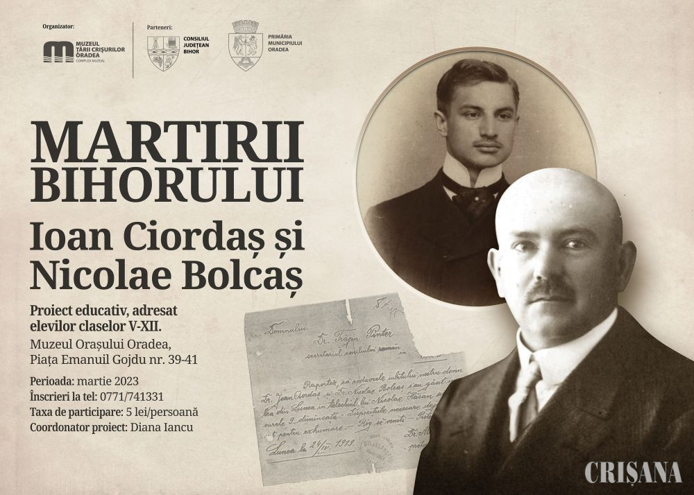 Muzeul Ţării Crişurilor adresează școlilor din Oradea și județul Bihor invitația de a participa la proiectul educațional „Martirii Bihorului. Ioan Ciordaș și Nicolae Bolcaș”.
