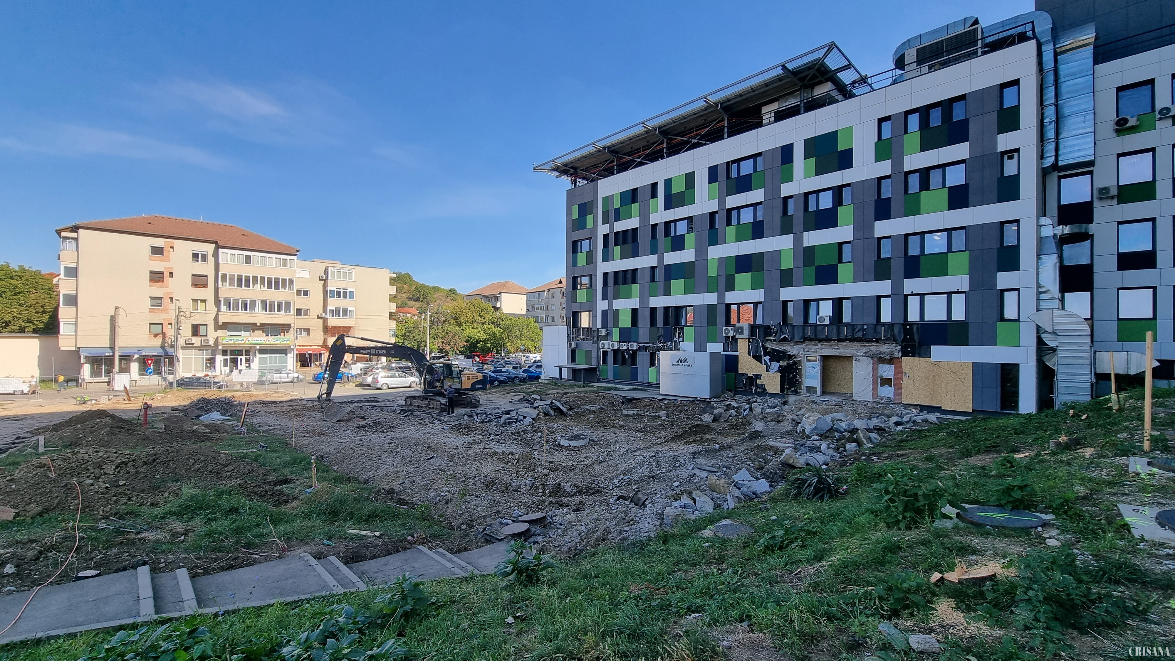 Odată cu demararea lucrărilor de la parcarea subterană, același constructor a preluat și amplasamentul noului ambulatoriu, ce se va construi în imediata vecinătate. Drept urmare, zona a devenit aglomerată din punct de vedere al accesului.